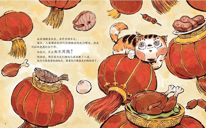 我是御猫胖桔子,故宫的主人。我喜欢仰望天空,观察天上的云。它们各种各样的形状,让我想起了美味的食物。有一天,我发现天空中真的飘着冰激凌甜筒一样的云彩!我走进发现,原来是神兽斗牛在打嗝。一到下雨天,斗牛就会止不住地打嗝,他为此很困扰。聪明的我为斗牛出了一个好主意,帮他止住了打嗝。