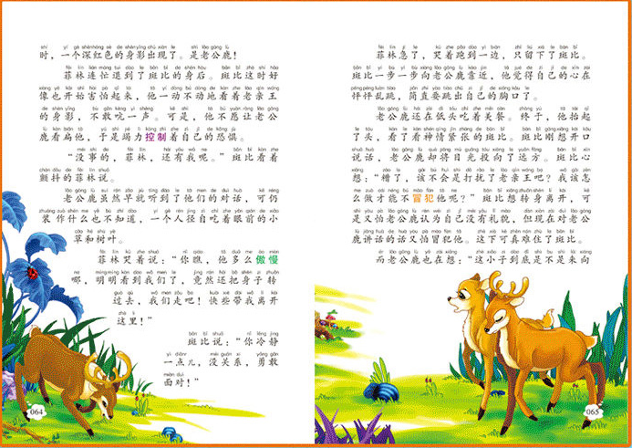 森林中生活着一群可爱的小生灵,他们是小鹿斑比、小白兔加纳、臭鼬花吉等,他们经常在一起玩耍。斑比在妈妈的精心抚育和耐心指导下,渐渐长大。他不但学会了生存的本领,还了解到越来越多的知识。他渐渐懂得了如何与同类中的同伴、长者,还有其他种类的动物们相处;他学会了帮助朋友,也从朋友那里获得了帮助。这一切与孩子的成长经历非常相似。不过斑比的妈妈一直在告诫他,森林里存在着“危险”。有一天,斑比在森林里见到一个 “人”,还有能顷刻间置他于死地的“枪”。在一次人类的捕猎活动中,斑比的妈妈被杀害了,郭波受伤倒在地上,斑比无可奈何,只能随大家仓皇逃走。幸好有他的父亲——那位老雄鹿国王引导他逃离了危险。