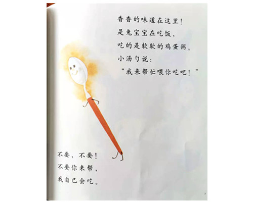 兔宝宝自己吃鸡蛋粥,不小心烫到了小脸蛋。这时有小汤勺来帮忙,舀一口,吹一吹,呼!呼!小宝贝,你也有小汤勺吗?