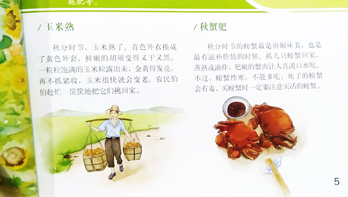 《写给儿童的二十四节气故事》以米米在农村爷爷家中的所见所闻为主线,分为节气由来、天文气候、动物植物、七十二候、农事安排、民俗节气、故事传说、节气古诗等几个版块,通过一段段生动活泼的文字和一幅幅美丽而又有浓郁传统风格的图画,揭示了自然界的魅力和农业的趣味,让小朋友对一年里的季节特点和农事安排了然于心。…………