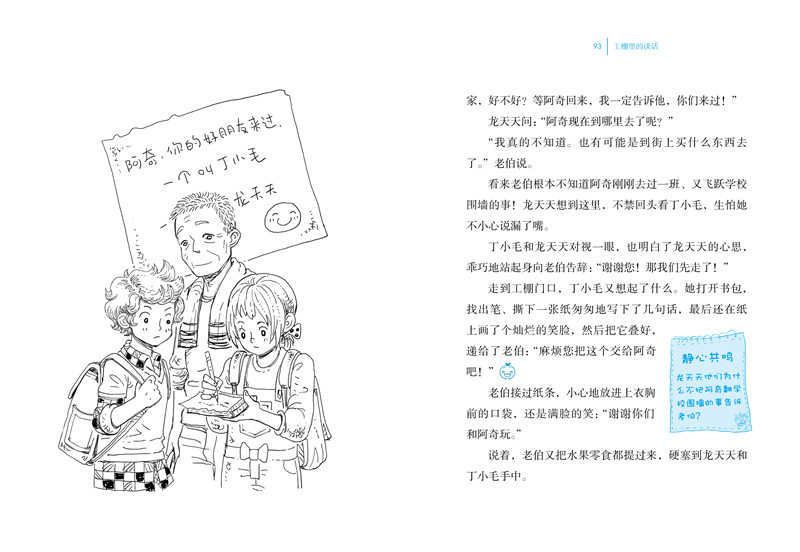 孩子们成长中会逐渐将视野延伸到家庭和校园外,而网络无疑是方便的途径。这套书中,龙天天和他的小伙伴们是在多么积极主动地利用这个工具……他们是信息时代的孩子,是了不起的孩子,他们在网上学习、在网上联络,一切的一切都跟网络有了关联。