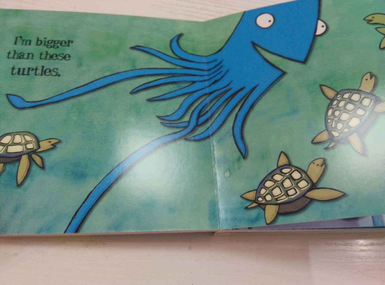 When a giant squid takes inventory of all the creatures in the ocean, he realizes that he's much bigger than most of them, and soon his ego is the biggest thing of all. Includes a special gatefold and bonus bathtub stickers. Full color. Consumable.
