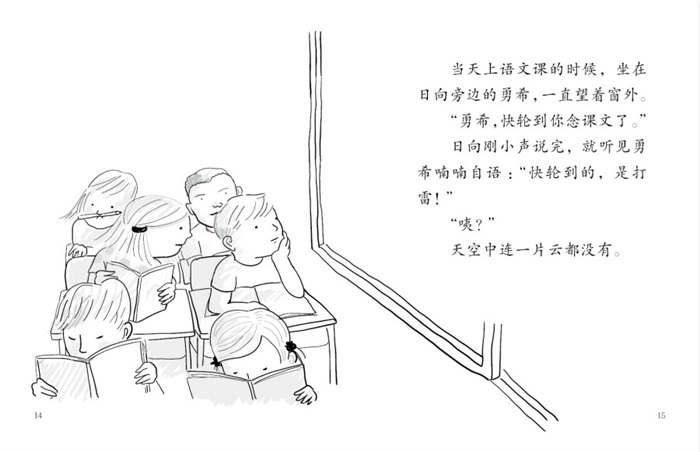 可是勇希的与众不同很多时候不仅不能得到同学的理解,反而会引来恶意的攻击。石川就总欺负勇希,当勇希念课文磕磕巴巴的时候,石川会在后面踢勇希的椅子,还和几个同学说勇希“笨蛋”之类的。每当这种时候,勇希也不说话,或者像是要将那些讨厌的话全都抖掉般的摇摇头……可能是守护小精灵在帮助勇希平心静气地面对这些吧。