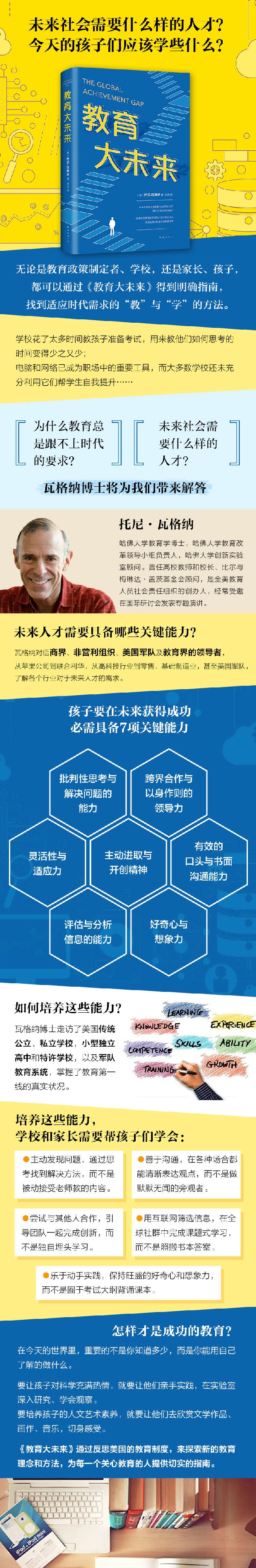 每一个关心孩子的人都应该了解时代的需求,并把这种需求作为指引贯穿于面向未来的教育过程中,让孩子为日后的学习、工作、履行公民责任做好准备,独立应对充满真实挑战的世界,掌握自己的明天。