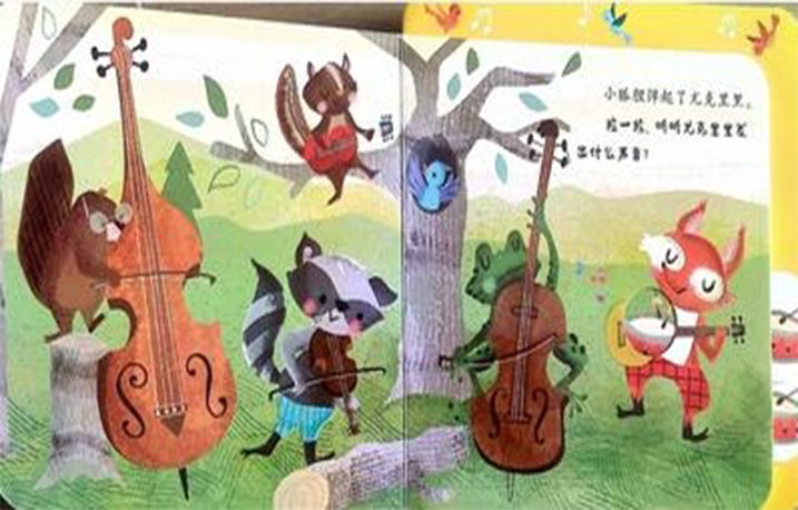 本套书共有4册。分别为《繁忙小镇》《开心生日》《奇妙森林》《趣味农场》。四大主题贴近宝宝生活,向宝宝介绍了身边常见的认知物。全套通过安全环保的胶片式隐形播放器进行播放,封底内嵌音源发声器,电池可替换。每册的末页都设置了圆形触控面,用手指轻点可以听到柔和、美妙又有趣的声音。本册以音乐为主题,包含伦敦桥、小星星等经典旋律,以书写训练、谜语、藏图等有趣好玩的小练习和小游戏带孩子们认识英语,让英语学习成为一种乐趣。