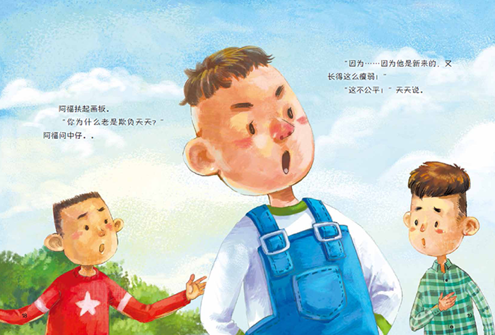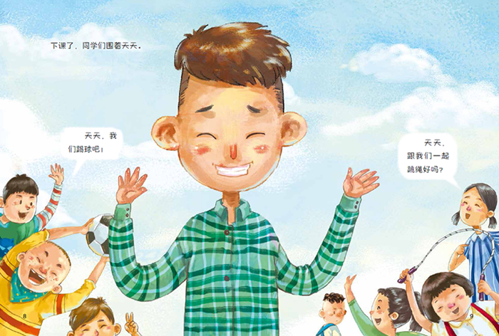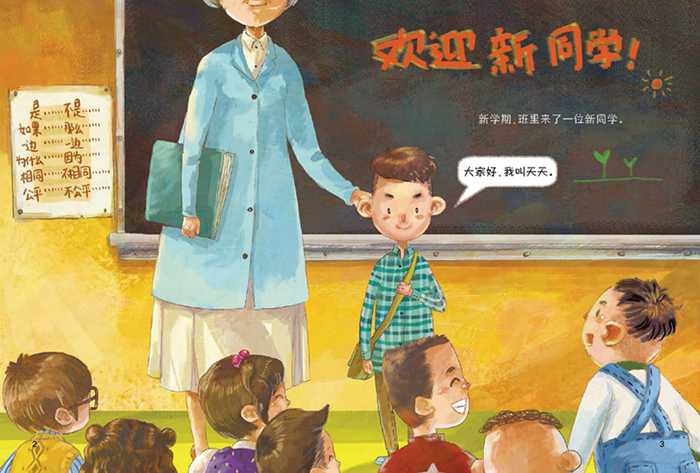 绘本讲述了班上新来了一个同学以后发生的故事。新来一个同学,使整个班级情况发生了微妙的变化,如何与新来的同学相处,如何调整自己的心理状态,促进班级小伙伴间的和谐,成了大问题。通过“词语训练”,孩子了解到新来的同学的总体情况,大家都喜欢跟他一起玩,这让另一个小伙伴产生嫉妒的心理,处处为难新同学。经过大家的劝说、帮助和鼓励,这个小伙伴认识到“自己的行为会让新同学觉得难过”,于是改变心态,成功解决了与小伙伴的矛盾。故事深入浅出,从常见的生活矛盾中揭示出更广泛的意义,具有极强的感染力。