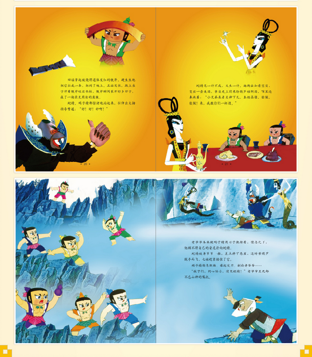 为了推动中国传统文化和原创精品图画书的发展,南方出版社与上海美影厂合作,利用现代电影高科技制作的最新技术,对这些传统经典进行还原和再创作,形神兼备、独特新颖,再现了那个时代的经典。这不仅可以唤起上几代人的美好回忆,更会让现在成长中的少年儿童感受到中国特色动画的艺术魅力,从而有助于他们的健康成长。
