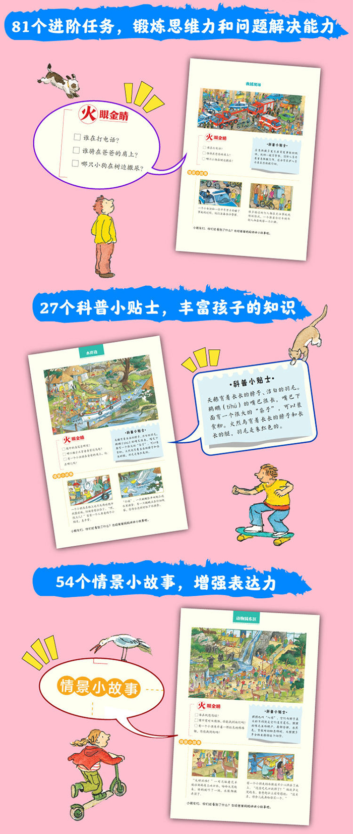 你能找到那个哭泣的小宝宝吗?还有手推车、车喇叭和拖行李箱的人……试试能不能在书中找到图片下方列出的70幅小图。每个跨页图中都有很多车辆,你能认出它们是什么车吗?擦亮眼睛,开始寻找吧!