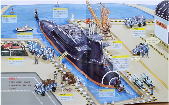 国内首套“中国军事科普绘本”“主角”是国产新式海陆空装备和军人。500余幅手绘大图剖析装备结构。15个兵种、100余种新装备、多种任务场景、千余知识点,让孩子了解国防知识,一眼看懂原理,爱上军事。 《核潜艇,出击!》核潜艇——神秘的大黑鲨,深海的独行侠,我们与它一起出征吧!