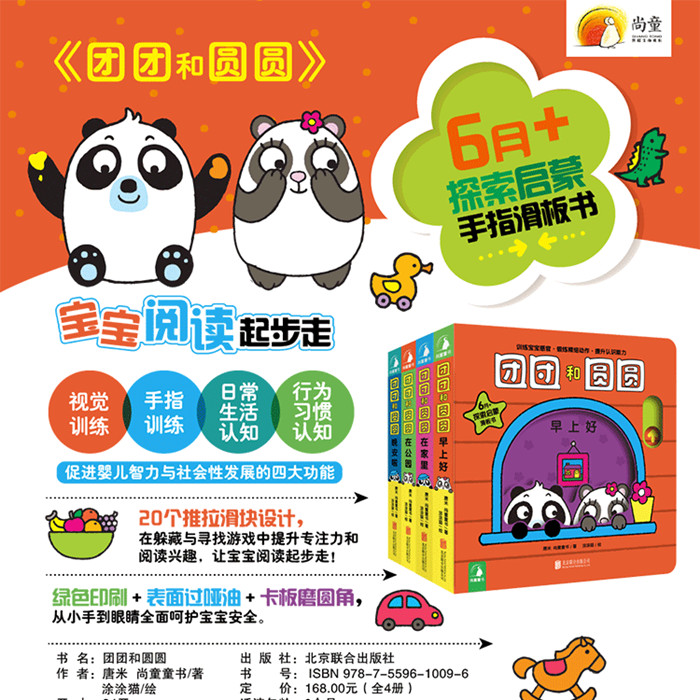 6个月以后,宝宝开始进入精细小动作发展的敏感期,《团团和圆圆》探索启蒙滑板书就是专为此而设计的。它精选了宝宝熟悉的生活场景,围绕主题设计推拉滑块,是一套集视觉、触觉、语言、互动等为一体的多元认知游戏书,将“视觉训练”、“手指训练”等感官训练以及“日常生活认知”、“行为习惯认知”等启蒙认知都囊括其中,满足3岁之前宝宝多感官的启蒙与发育需求。