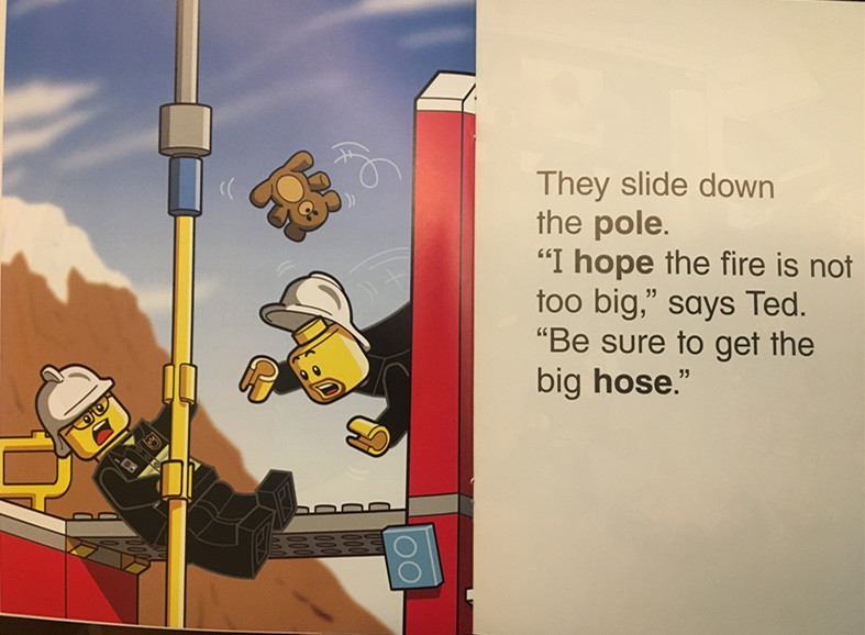 当然,这套phonics必然要有拼读的练习,只是沉迷情节就浪费了作者把乐高和拼读结合的本意啦!封面后的词汇全都在书中出现哟!这套书不是phonics教材,应该是有拼读基础的孩子的练习,或者是启发有单词基础的孩子发现字母组合的发音规律,再或者乐高迷刚开始英文启蒙的小朋友就干脆作为亲子阅读的绘本,等熟悉了故事之后慢慢的引导培养听音辨音能力。