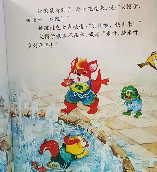 故事中火帽子跑进广场的喷泉里玩水,不小心滑倒,幸亏红袋鼠和跳跳蛙把它拉出来。夏天到了,很多小区和景点的喷泉陆续开放,成了孩子们的戏水乐园,殊不知看似好玩的喷泉却隐藏着危险...