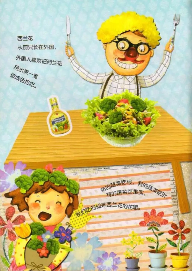 “我不要吃西兰花”,“我不要吃蘑菇”……这样的场景并不鲜见,幼儿挑食实在是件令人头疼的事,但在《我不要吃》这本科学图画书中,隐藏着半截身子的老师却总能用稀奇古怪的联想把令人讨厌的食物变得有趣起来。对生活中常见事物的合理联想是本书最大的特点,由师生间的轻松对话以及极富视觉冲击的事物照片来呈现。作者还巧妙地在围观孩子的纷纷议论中渗进食物的常识,从幼儿的思维方式与生活经验出发,不仅让吃饭这点事变的好玩起来,也传递出正确的饮食常识。