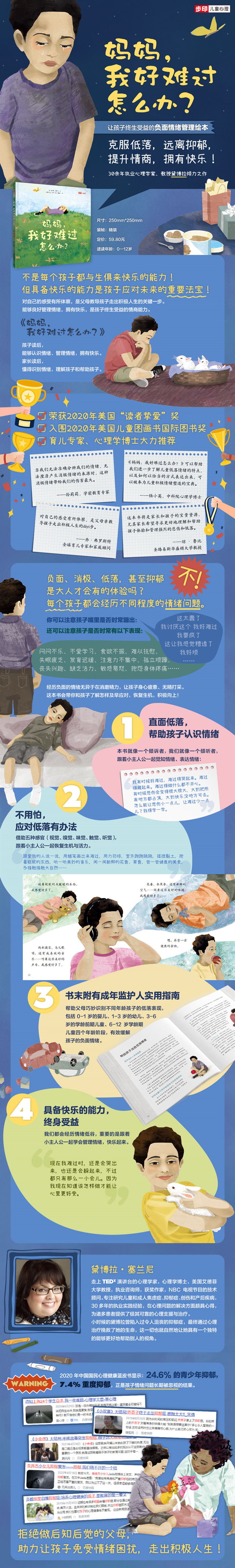 闷闷不乐、不爱学习、食欲不振、难以抚慰、失眠疲乏…… 经历负面的低落情绪无异于在消磨精力,让孩子身心疲惫、无精打采。 对自己的情绪和感受有所体察,是父母教导孩子走出积极人生的关键一步。 这本书会带你和孩子了解怎样及早应对,恢复生机,积极向上!