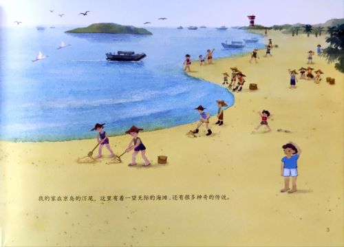 1.独特有趣的海滨风光:围网捕鱼、高跷捕虾、夜钓鱿鱼,海岛上的童年乐事特别多。 2.丰富多彩的民族风情:古老的传说、悠扬的独弦琴、热闹的哈节,京族人热爱海洋,热情生活。 3. 印刷精美,设计考究:进口超感纸纸质细腻,完美还原色彩绚丽、层次丰富的唯美手绘插图