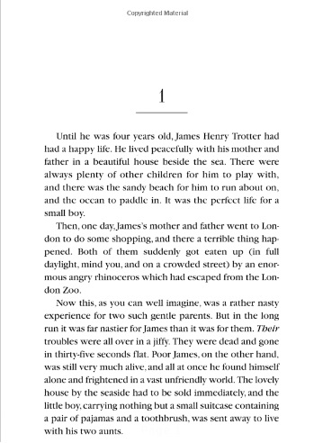 James Trotter loses his parents in a horrible accident and is forced to live-miserably-with his two wicked aunts. Then James is given some magic crystals that give him hope. But when he accidentally spills these crystals on an old peach tree, strange things begin to happen. A peach starts to grow and grow until James is able to climb inside and escape his awful aunts! And through this adventure, he makes some interesting friends, including Grasshopper, Earthworm, Miss Spider, and Centipede, and finally finds a place where he belongs. Annotation A young boy escapes from two wicked aunts and embarks on a series of adventures with six giant insects he meets inside a giant peach.