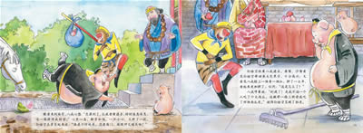 《半夜鸡叫》是广为流传的红色经典选段。这篇文章文字朴实,故事生动,读后让人过目难忘。为了准确表现故事中各个人物的神态,我们在改编后请最擅长人物塑造的国画人物专业的李江涛老师绘图,他对人物的性格和心理有很好的理解,所有画面都惟妙惟肖。在试读的过程中,孩子们都忍不住哈哈大笑,看到他们由衷的欢乐,我们也感到非常满足。