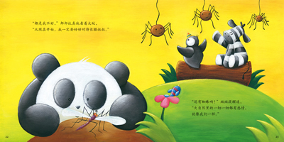 ● 全书情节简洁,内容极有规律:熊猫邦邦、小鸟哔哔、斑马斑斑,成日坐在热带雨林当中一棵大树干上,无所事事,想象些雨林外的世界,谈论些生活琐细,做些绝不执行的打算,一切慵懒闲适,哲理似隐似现。