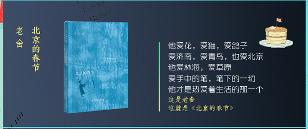 “大家小书”书系意旨大作家的短小经典篇章。本册是老舍的作品集——《北京的春节》,以散文为主。其中大部分为写景散文,如《济南的冬天》《春》《五月的青岛》等,从冬到春,寓情于景;还有描写小动物的散文,如《小麻雀》《鸽子》;也有描写作家日常生活的散文,如《写字》《取钱》等,幽默诙谐的文字背后表达着作者的思想情感。书中个别篇目配以精美的插图,还有贯穿全书的穿插页点缀其间,让读者再阅读的过程中,欣赏插画的同时,还能够拓展知识,开阔眼界。老舍的作品大多取材于市民生活。他善于描绘城市贫民的生活和命运,尤其擅长刻画浸透了封建宗法观念的保守落后的中下层市民,在民族矛盾和阶级搏斗中,在新的历史潮流冲击下,惶惑、犹豫、寂寞的矛盾心理,和进退维谷、不知所措的可笑行径。