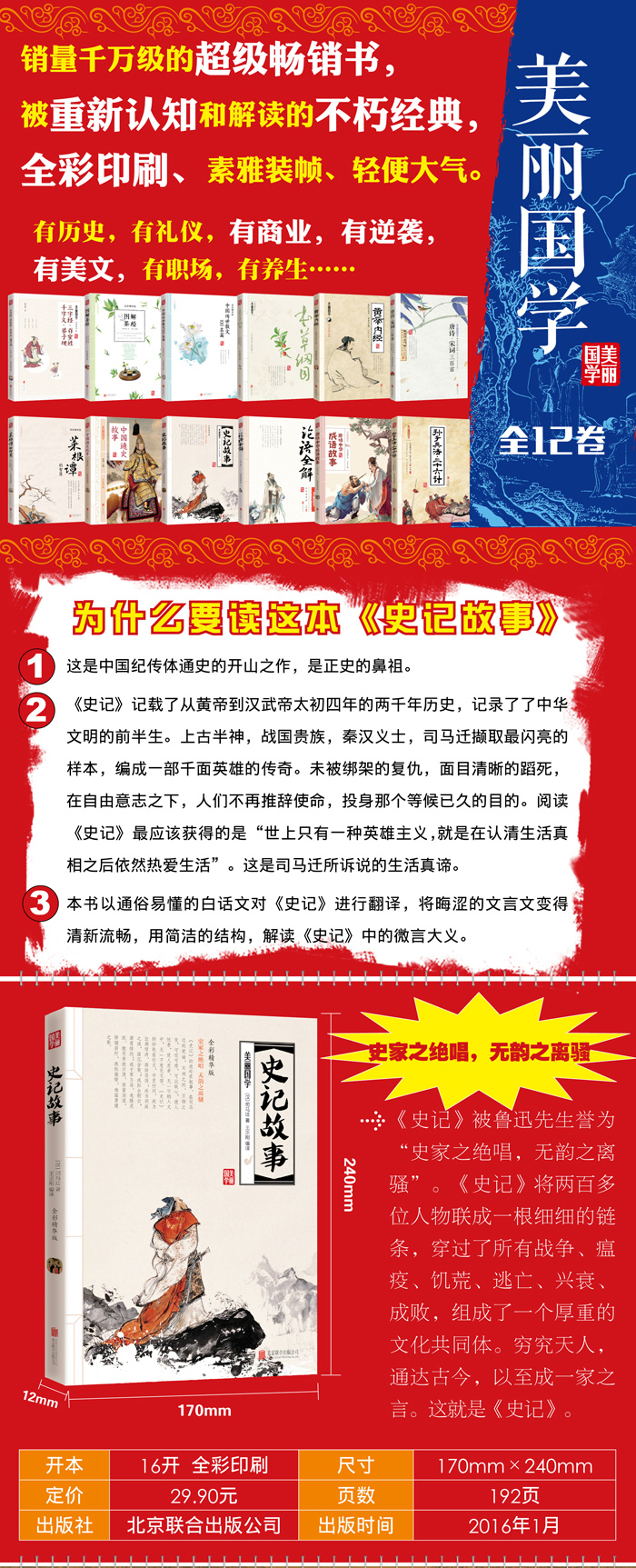 1.近百个《史记》故事,不一样的人物,不一样的性格,不一样的人生悲喜在这里展开。