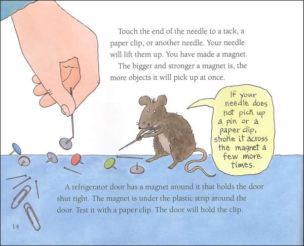 Will a magnet pick up a paper clip or a feather? The answeris, just the paper clip. Magnets only pick up things that containbits of iron. In this new addition to the Let's-Read-and-Find-OutScience series, veteran author Franklyn Branley explains theproperties and behavior of magnets. True Kelley's charmingillustrations will entertain readers as they discover forthemselves what makes a magnet. Hands-on activities include makinga magnet and compass.