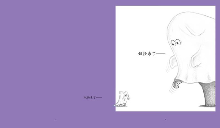鼠小弟蒙上一床被单,扮成妖怪出去吓唬人,没想到,一路上碰到了好几个“妖怪”!看到这些妖怪的鼻子、发型、耳朵、嘴巴和脚丫,就知道他们是大象、狮子、兔子和鸭子啦!这时又来了一个头上有蝴蝶结的妖怪,一定是鼠小妹吧?可鼠小妹就在大家身后啊!