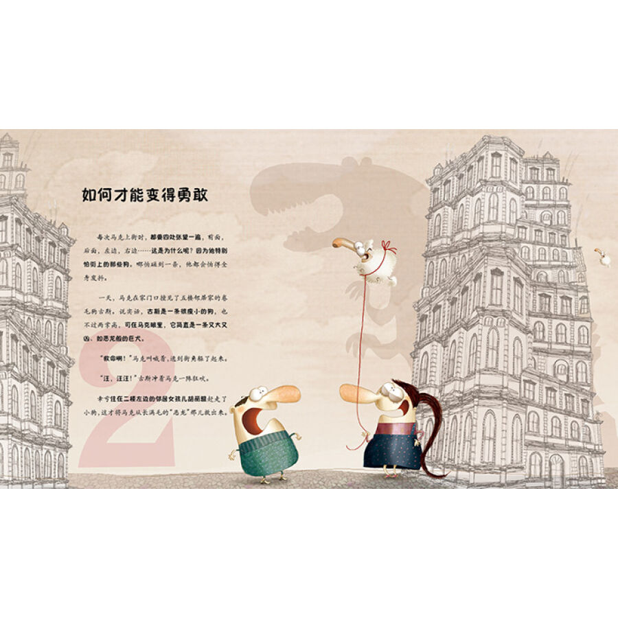 一天,马克在家门口撞见了五楼邻居家的卷毛狗古斯。说实话,古斯是一条很瘦小的狗,也不过两掌高,可在马克眼里,它简直是一条又大又凶、如恶龙般的巨犬。