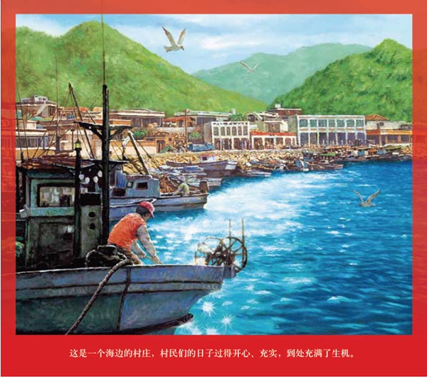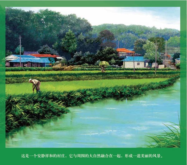 这本书教给孩子们要懂得大自然的珍贵。图书讲述了两个不同的故事,在左右页面用绿色和红色来区分。绿色讲的是农村的故事,红色描述的是海边村庄的故事,并同时在一张画面上展现,这种巧妙的结构方式能更加吸引孩子们的注意力。