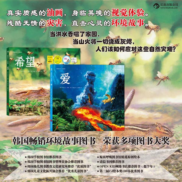 这是一本充满“爱”的书,它让我们相信:爱能够帮助人们战胜任何灾难。洪水、海啸这两个互不相同的故事分别用红、绿两色分开,并在左、右页面同时呈现,设计新颖独特。