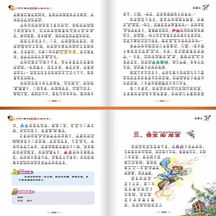 《小学生语文新课标必读丛书:西游记》选取原著中精彩的篇章,运用通俗的语言,加注汉语拼音,奉献给广大小朋友们。在编写过程中,我们去除了那些深奥的文字内容,注重增强故事的可读性、情节的合理衔接,以便激发小朋友的读书兴趣,培养小朋友的基本文学素养。同时,《小学生语文新课标必读丛书:西游记》还配有大量彩色卡通图片,如同身临其境,给小朋友们充分发挥想象的空间。