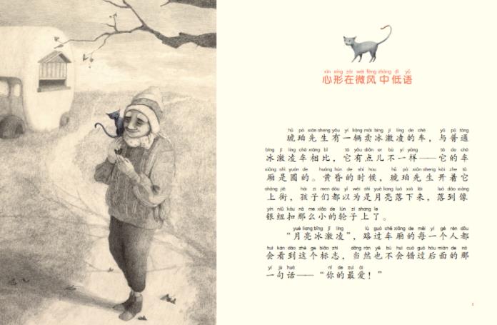 琥珀先生开着他的冰激凌车,带着一只尾巴会变色的猫,穿梭在各个城镇之间。他们*喜爱的游戏是寻找心形的东西,以及为大家制作能使人重获快乐的月亮冰激凌。他们为忧郁的老太太做了一支粉红色的冰激凌,让她重获小女孩的喜悦;他们为被孤立的小胖子做了一支透明的冰激凌,让他破涕为笑;他们为失去母亲的小姐妹做了一支烟花冰激凌,让她们重温妈妈的爱。一切都很顺利,猫儿唱着一首又一首的歌。但是一阵黑暗的不祥之感不断涌上变色猫的心头,有什么不好的事正在发生……当冰激凌车驶入幽暗的森林,琥珀先生和变色猫发现原来是世界之心有了危险。变色猫跳入了漆黑的潭水捞出了那颗已经扭曲变形的世界之心,它舔过那颗心后就陷入了昏迷。琥珀先生伤心地带着变色猫和世界之心离开,但是好在变色猫慢慢地恢复了精神,它把自己的小床送给世界之心,让小床载着这颗心随着海浪飘向夕阳。相信大海和阳光可以治愈它。故事的*后,一人一猫吃着甜美的冰激凌依偎在夕阳里,为远去并逐渐康复的世界之心唱着赞歌。