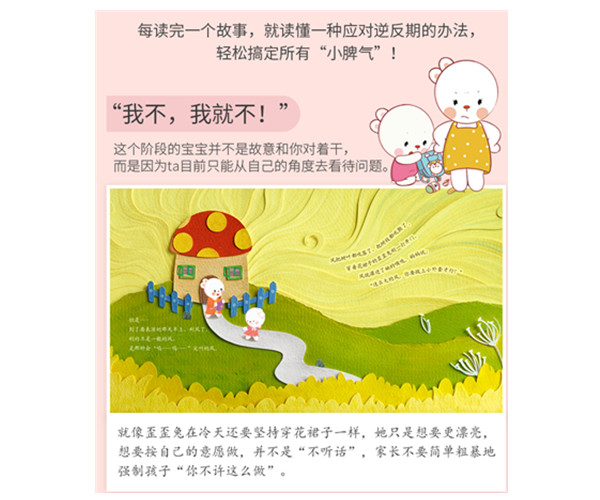 帮助孩子化解逆反心理和行为,顺利度过逆反期,是本套图画书的主题。该书以逆反期孩子8大类突出的逆反期行为表现为主题,透过逆反现象,挖掘心理根源,找到解决办法,帮助孩子克服任性执拗、拖拉磨蹭、依赖黏人、凌乱无序,克服抵触与暴躁,化解冲突与嫉妒………