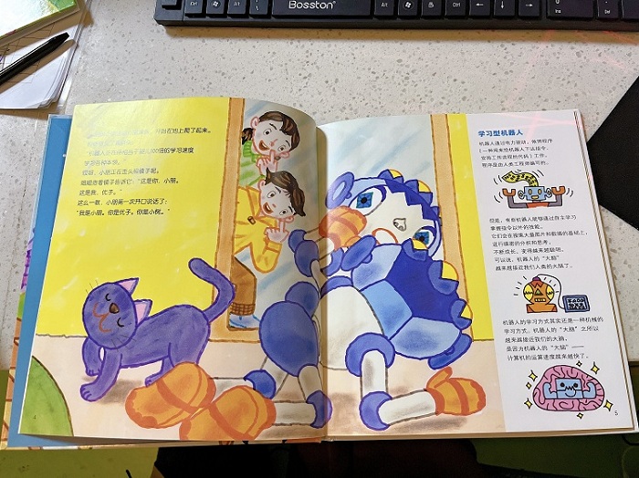 看完假如有一天这个系列的科学幻想绘本,不禁感叹作者是真敢想象。例如在孩子们在宇宙空间站的教室里上课;在月球上开车和种蔬菜;和机器人在一起生活的趣事;机器人开车载我们去兜风;饲养恐龙,给恐龙喂食,和恐龙一起游泳。这些都是我们人类目前还尚末实现的,但是我相信敢想才有更科技化的未来。