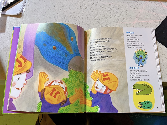 看完假如有一天这个系列的科学幻想绘本,不禁感叹作者是真敢想象。例如在孩子们在宇宙空间站的教室里上课;在月球上开车和种蔬菜;和机器人在一起生活的趣事;机器人开车载我们去兜风;饲养恐龙,给恐龙喂食,和恐龙一起游泳。这些都是我们人类目前还尚末实现的,但是我相信敢想才有更科技化的未来。