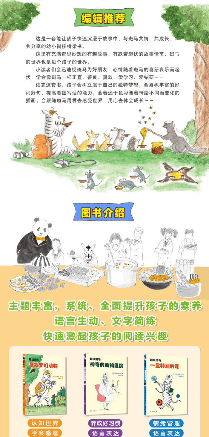儿童文学不仅要写得“有趣”,而且要写得“有益”。这个“有益”就包含着促进儿童读者“思考”能力的发展。“超级斑马“系列以生动有趣的故事,对那些在儿童成长中具有重要价值的各种不同的“思考”,进行感性化的艺术表现,将发展儿童读者的“思考”能力落到了实处。