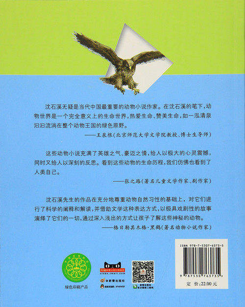 《怒江狼獾》动物小说是一种独特的艺术体裁形式。它的特点在于它是以动物为主要描写对象,形象地描绘动物世界的生活,动物在大自然中的命运、遭遇及动物间的关系,动物与人类的接触等,动物小说给人类以更有益的启示与享受。在本书的故事中,主人公从对狼獾的磨刀霍霍,到欲擒故纵,再到共渡难关,*后到挺身相护。这反映了人与动物的不同关系,以及由敌到友种种关系间的转变过程。可以说,少年水秧儿是作家思维中人类的一个理想缩影,他与狼獾的故事,象征了我们人类与自然亲睦的美好愿景。
