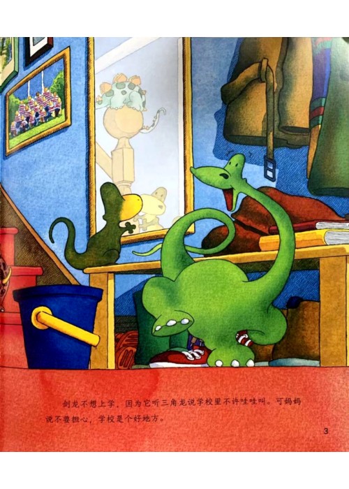 剑龙不想上学,因为它听三角龙说学校里不许哇哇叫。可妈妈说不要担心,学校是个好地方。