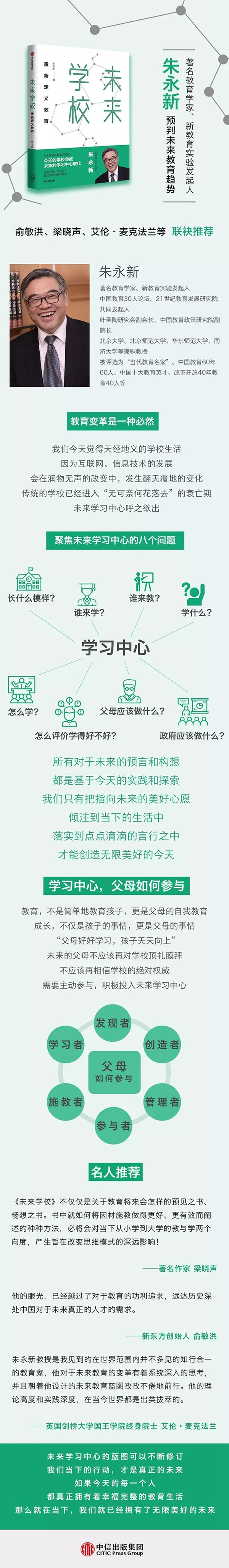 本书属于教育类图书。未来,物理形态上的学校,钢筋水泥砖瓦花木,依然如故,保安可能还会有,围墙也可能依然存在,但是,传统的学校,不再是唯一的学习场所。说到学习,大家马上想到的不是“学校”,而是“学习中心”。未来的学习也不再以知识为中心,而是以学生为中心。未来学习的主体,不再只是学生,谁想学,谁就是学生。未来的学习方式不再课堂讲授,而是突破时空限制的游戏化、弹性化、沉浸式、探究型学习…… 新教育实验发起人朱永新认为,我们已经来到了教育大变革的前夜,已经站在了未来学习中心的门前。推开这扇门,就是一个新的教育世界。朱永新在这部新书中提出了关于未来教育趋势的预判——未来学习中心,并系统化地整理了未来学习中心的想法,同时与读者(教职人员、家长、学生、政府等教育监管机构)一起探讨未来教育的发展趋势,迎接未来,拥抱未来,为未来的到来做好准备。