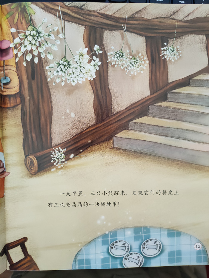 《如果你有一块钱》是《“晚安,宝贝”名家大奖系列》(全十册)其中的一本。故事里的三只小熊喜欢把鼻子压在杂货店的玻璃上,唱着:“如果你有一块钱小熊,你最想买什么?”的歌谣。但当他们有一天真的得到了一块钱时,他们却高高兴兴的把钱给了急需用钱的雪人拉拉,因为他们喜欢雪人拉拉,愿意让雪人拉拉高兴,这种无私又慷慨的馈赠完全发自内心,发自小熊们那纯真善良,不计得失,毫无功利的内心。所以说这个故事的内核,其实并不仅仅是乐于助人的美德,还有那种珍贵的,闪闪发亮的美丽童心