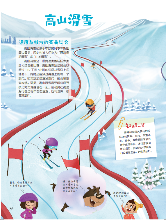 《青少年冰雪运动绘本百科:履冰踏雪冬奥会》主要面向青少年群体,以简洁、幽默的语言和海量的酷炫手绘图,将冬奥会的起源、文化等内容以及北京2022 年冬奥会的竞赛场馆、竞赛项目、竞赛规则等知识娓娓道来,并适时融入了优秀冰雪运动员的奋斗故事,让孩子们一本书看懂冬奥会。