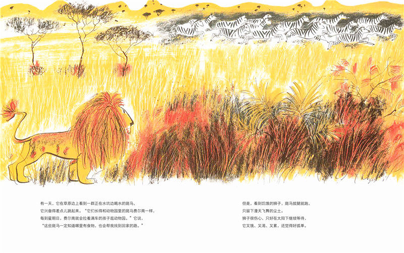 快乐狮子的故事摒弃了成年人的经验性思维,用一只狮子的视角,其实也是干净的儿童视角徐徐展开,轻描淡写之间给我们带来感动和思考。而他为人称道的钢笔画更是将线条的疏密、黑白与色彩的平衡发挥到极致。——熊亮 中国知名原创绘本作家