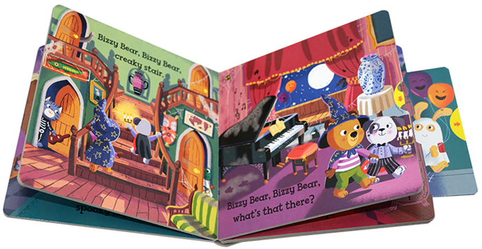 除了操作机关外,Bizzy Bear使用的语言文字*是这套书的一大亮点。句子富有韵律感和节奏感,句型非常短,而且都有重点单字,简单重复,朗朗上口,听起来生动有趣,特别适合启蒙。