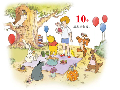 《123数数看》维尼和朋友们要过百亩林节,大家在准备数目不等的食物和玩具。整首儿歌简洁明了,朗朗上口。可以帮助孩子快速学会1~10的10个数字和顺序。