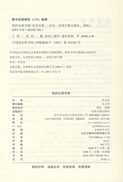 台湾连续十五次印刷,荣登社科类畅销书榜首。 我是一个什么样的人?我喜欢什么?我擅长做些什么?我适合从事什么样的职业?在选择与被选择之间我该如何抉择?生涯手册,做*好的自己。如果你还年轻,这本书将引导你认真规划一生;如果你步入中年,这本书让你反思过去,开创更美好的未来