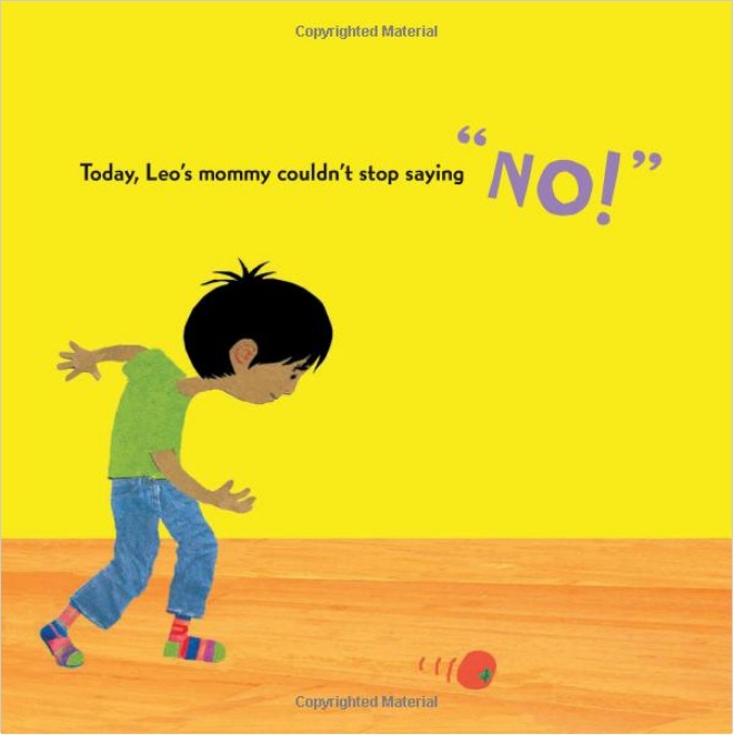 Leo's mother was always saying no. No, no, no, NO! She said that when he rolled tomatoes across the floor. Splat, one hit the wall! She said that when he put string beans in the fish bowl. Plop! She said that when he danced on the table and again when he squeezed toothpaste all over the toilet seat and down into the bowl. "Mommy, no more no's! I HATE no! His mommy explained to him that there were some things he was going to do that would make her say no, but there were some things he "should not do." Well, Leo got very angry and went to his room.