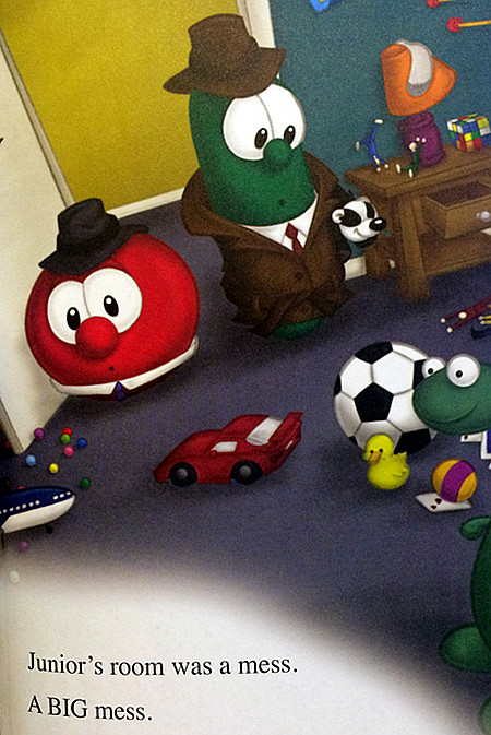 Combining the ever-popular Veggie humor and characters with strong messages of God s love and acceptance, Junior Comes Clean, a Veggie Tale Level One I Can Read, will be a best seller for the retailer and a best-loved book by the families that purchase them. Emergent readers will not only improve reading skills using the proven success of the I Can Read program, with its age-appropriate vocabulary and concepts but they will be learning about and growing in their faith with the help of the VeggieTales friends! When there are many messes in the Asparagus home, Mess Detectives Bob and Larry arrive on the job to solve the mystery. What they find is Junior Asparagus being less than honest about who made all the messes. Read along as Junior and Larry both learn about how important telling the truth can be."
