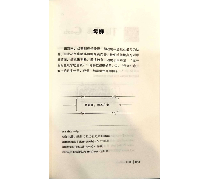 《伊索寓言》是世界上*古老的寓言集,大多故事是以动物为主角,以动物为喻,教人处世和做人的道理。篇幅短小,形式不拘,浅显的小故事蕴含着大智慧,具有深刻的寓意。它的言简意赅,故事生动,想象丰富,平易近人,富有哲理。其中《狐狸和葡萄》《母鸡和金蛋》《野兔和乌龟》《狼和小羊》《乌鸦和罐子》《牧童和狼》《农夫和他的儿子们》《蚊子和狮子》《北风和太阳》等已成为全世界家喻户晓的故事。