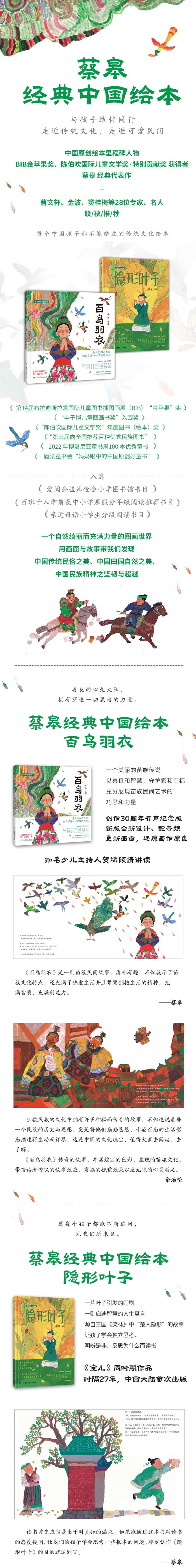 这是一本图画故事书,故事改编自西汉淮南王刘安主持撰写的《淮南子》中“楚人隐形”的寓言故事。 讲述了一个叫董小小的少年相信书中所言,努力去寻找螳螂捕蝉时所用的隐形叶子,找到叶子后,用叶子挡住眼睛偷橘子,后被人发现的幽默寓言故事。 这个寓言故事告诉我们:读书时,要有自己的独立思考,不能读死书;同时,也要联系实际生活,学会判断是非,什么事情能做,什么事情不能做。每个孩子都会有犯错的时候,要给孩子足够的时间成长和领悟。 1.作者蔡皋是中国首位获得BIB“金苹果奖”的绘本画家,中国绘本发展史上的先驱者、里程碑人物,国风绘本代表画家,其作品是传统文化的回归与传承,是文学与美学的完美融合。 2.本书是《宝儿》同时期作品,画风稚拙,色彩大胆,画面童真。 3.一片叶子引发的闹剧,一则启迪智慧的人生寓言,源自西汉《淮南子》中“楚人隐形”的寓言故事。 4.1995年台湾信...