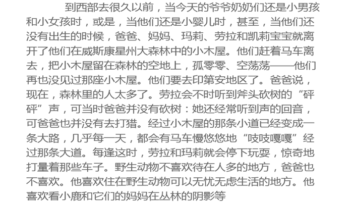 本书源自劳拉·英格尔斯·怀尔德的“小木屋”系列,是这一系列中,名列首位的,被广泛阅读和喜爱的一本。本书讲述的是一个迁徙的故事,一家人从越来越吵的大森林出发,不远万里,向茫茫没有边际的西部大草原挺进。等待他们的,既有要命的热病、凶险的草原大火,还有陌生的印第安人、饥肠辘辘的狼群,一家人如何彼此依靠,互为帮手,并*终战胜困境,是故事颇为迷人的地方。它向孩子们传授了各式各样的“野外生存技能”,也细腻地触及了儿童成长时期的敏感内心,以润物无声的方式,教会孩子善意与尊重、合作和理解。多年来,《草原上的小木屋》被世界各地的家长和小朋友喜欢,因为无论是谁,都能从中体会到爱。