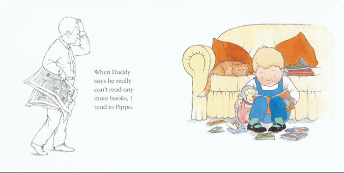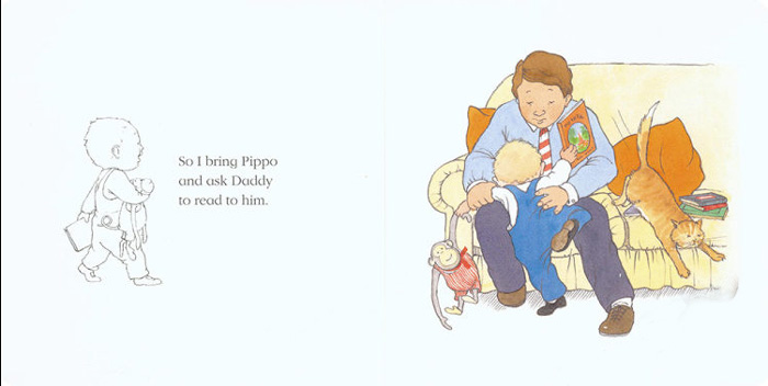 男孩Tom认为自己的长臂猿玩具Pippo应该想听故事,可是爸爸只想自己读报纸。